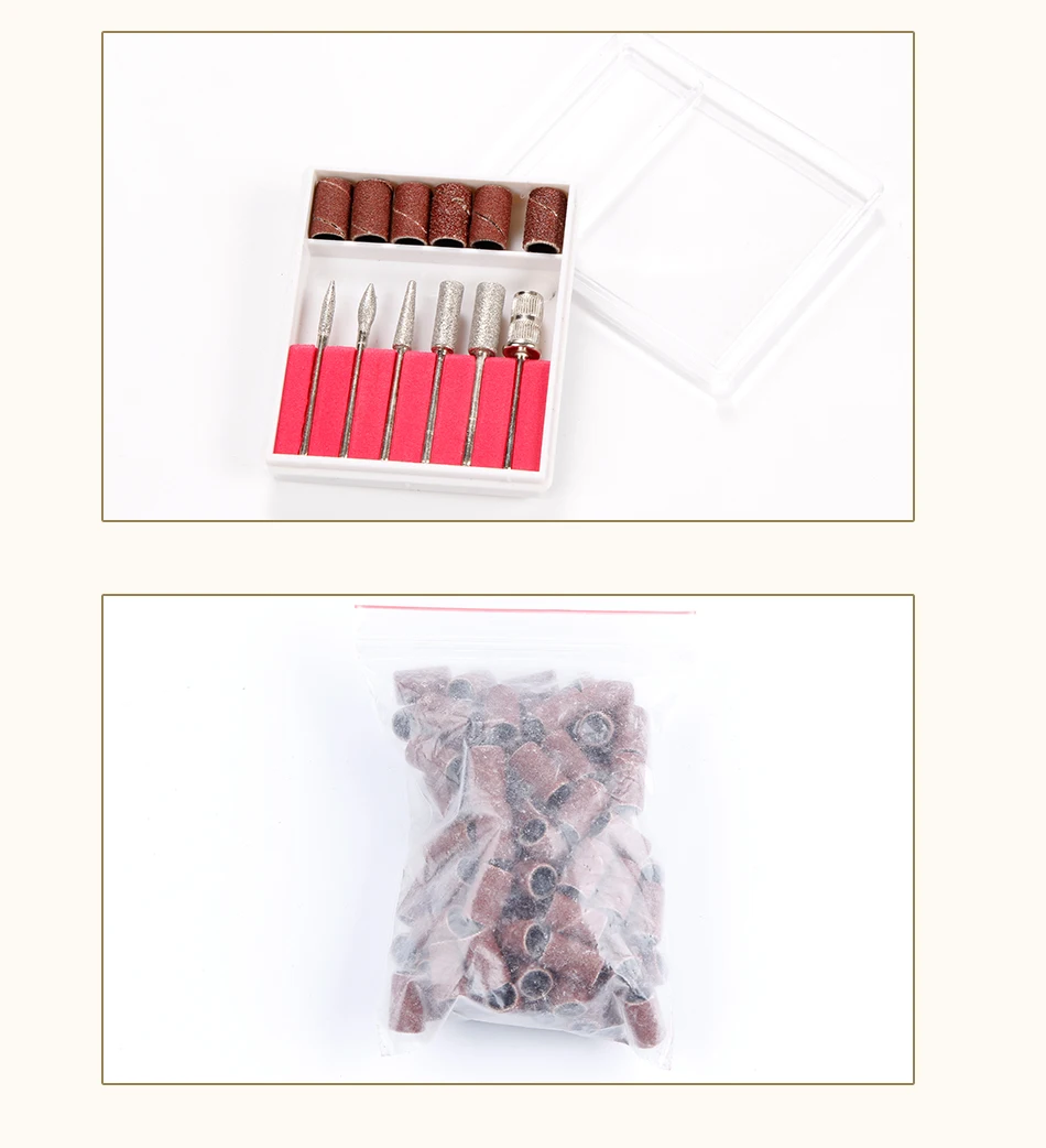 Electric Manicure Kit Ceramic Milling Cutter Gel Varnish Remover Nail Drill Bits Set Nail Art Drill File 300pcs Sanding Bands